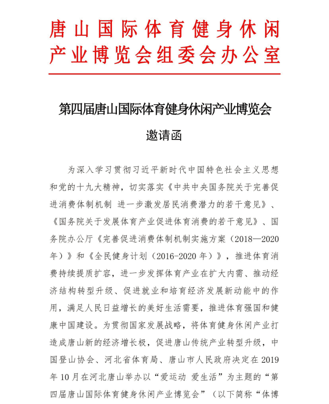 2019第4屆唐山國際體育健身休閑產業博覽會邀請函